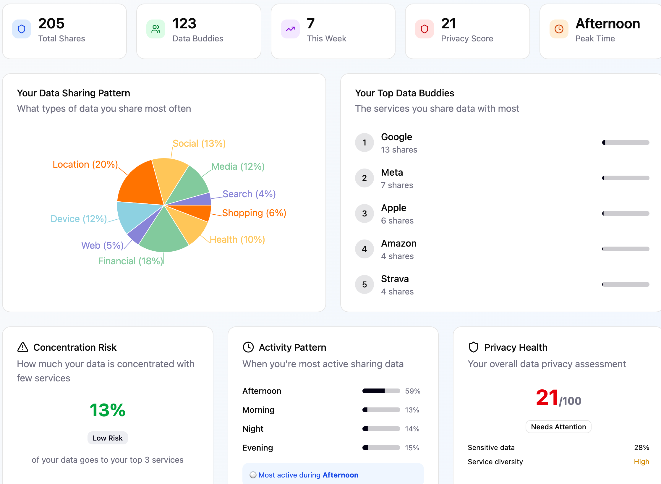 Discover your data sharing versus data insights into one diary.